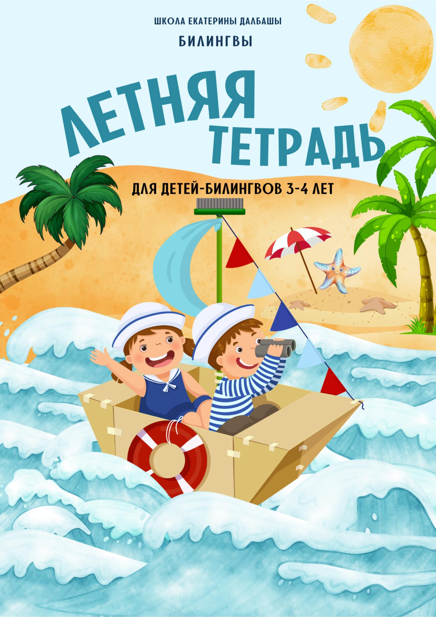 Тематическая тетрадь для детей-билингвов 2-3 лет для летних занятий, направленная на знакомство ребёнка с такими лексическими темами, как: насекомые, морские обитатели, фрукты, птицы, неживая природа (вода, ракушки, камни).