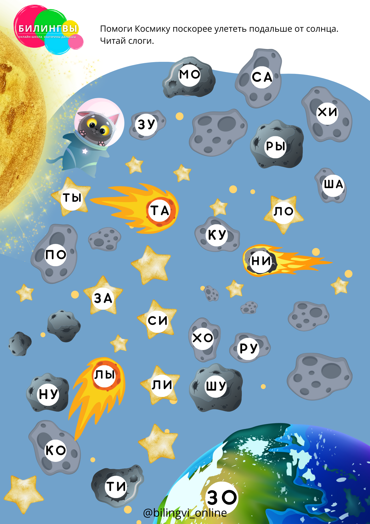Задания в тетради игровые, курс построен в виде приключенческого космического путешествия, ребенок склеивает курту звезд и планет и отправляется в приключение, где знакомится с буквами и учится читать на русском языке.