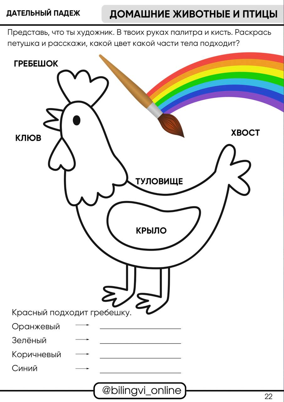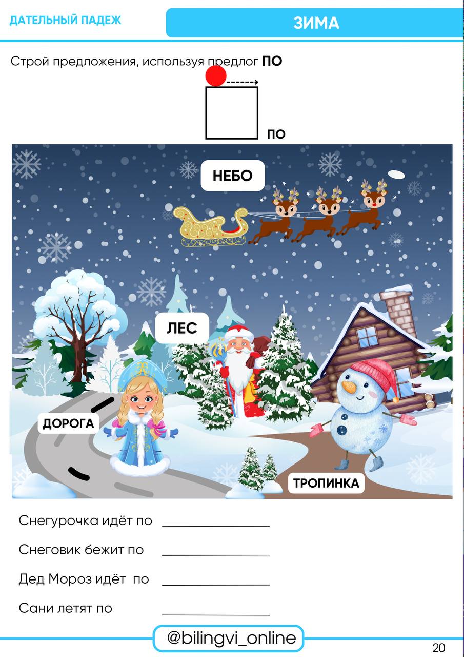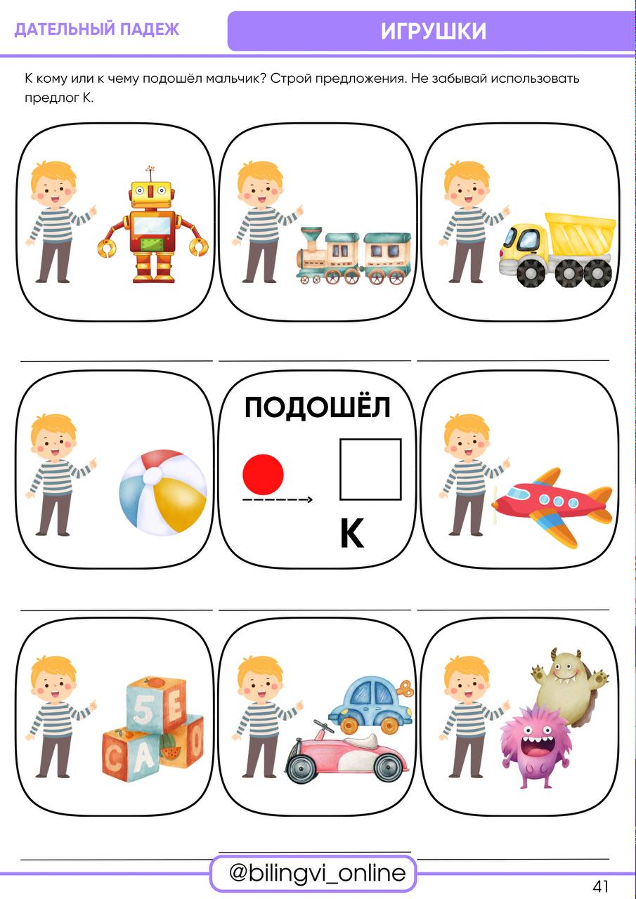 Тетрадь игровых упражнений на изучение дательного падежа для детей-билингвов 3-7 лет.